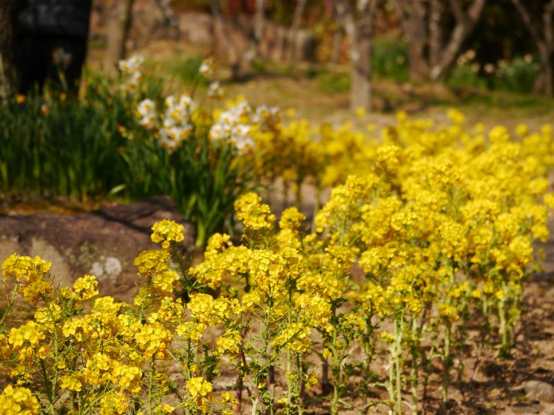 離宮植物園は、梅の花が見頃で、足下に菜の花、水仙も咲いており、一気に春がやってきた感ありです。