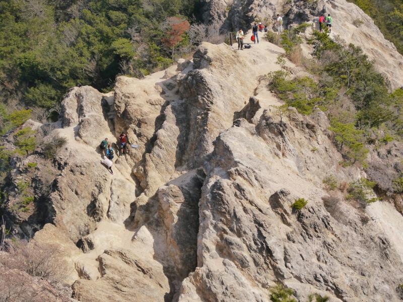 須磨アルプスは人気のコースですが、風化した岩場を通過するため、注意しましょう。