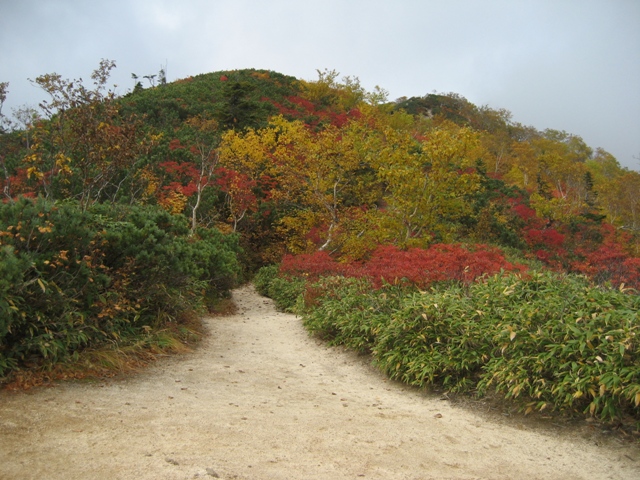 下の方はまだ緑でしたが 途中から頂上にかけて紅葉してました