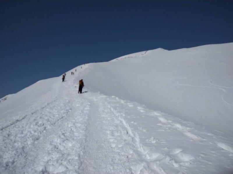 チェーンスパイクの方も何名か見かけましたが、12本爪アイゼン・ピッケルの方が安心だと思います。