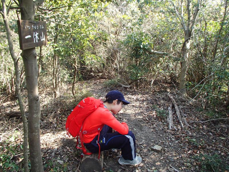 ・尾根に出ると頭上が一気に明るくなり、気分も明るくなります。途中に「一休山」という、「休憩しないと!」と思わせるピークがありますので、休憩していきましょう。