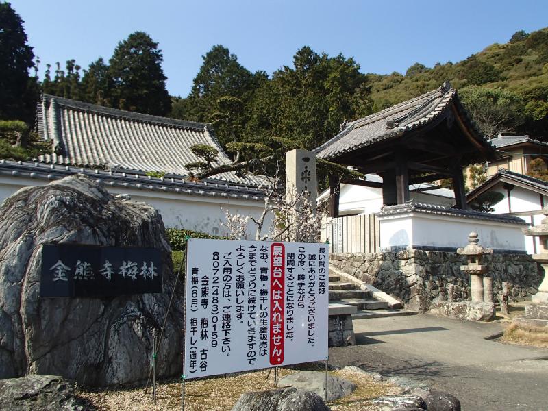・まずは車を走らせ「金熊寺」へ。お寺の前に駐車場がありましたが、既にほぼ満車でした。梅林下にも駐車場があり、コチラの方が広いです。