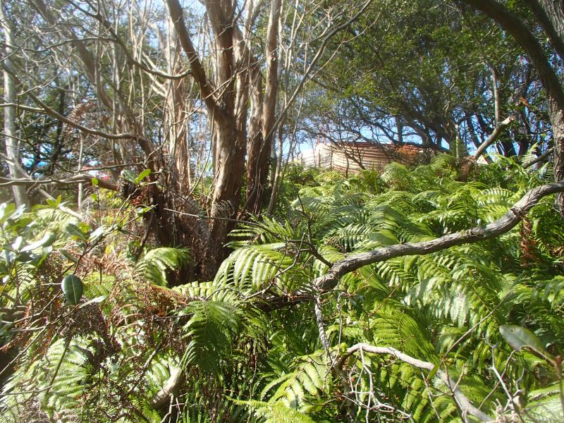 ・一旦周りを見回し、左手にもそれらしい感じはあるものの、地図からすると右手の斜面を行く方が近い感じ。踏み跡らしきものもあるので、右のコースを選択。シダが生い茂る急斜面を登って行きます。なんだか沢を詰め切った後の藪こぎみたいなかんじです。