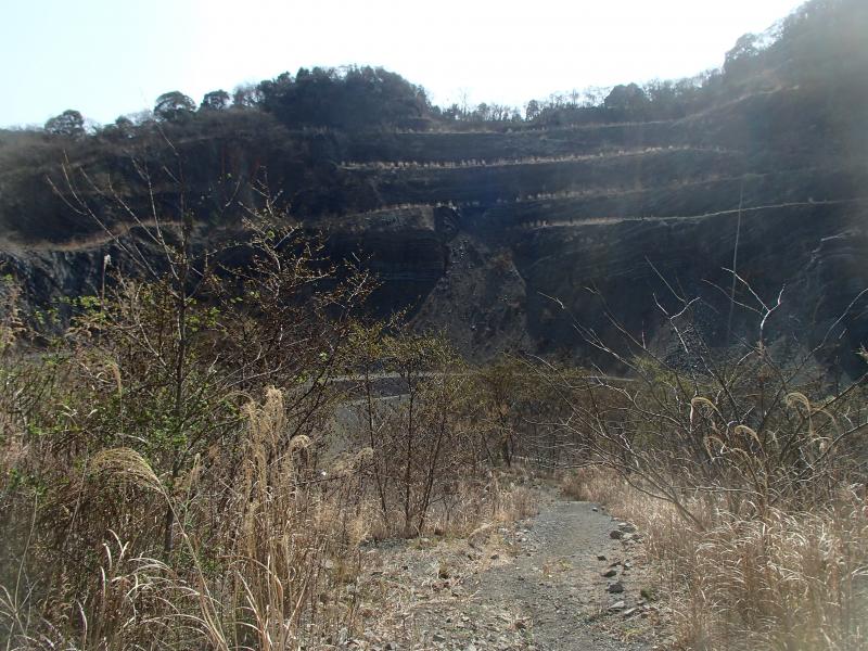 ・痩せた尾根道を歩いていくと採石場に出会います。ここから工事用に整地された道を少し歩き、採石場の上部に行きます。ここからがまた分かりにくい・・・。ぬみ跡を辿りGPSを見ながら進むと目印発見!う~ん、やっぱり間違ってたのか?