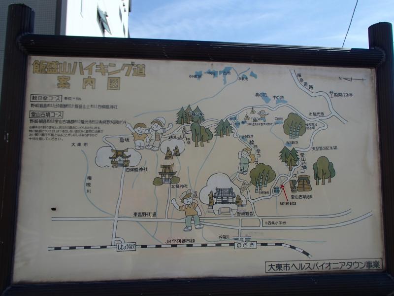 - 野崎駅>10分>野崎観音>20分>七曲起点>5分>灌頂の滝>3分>七曲起点>20分>杉むら峠>12分>飯盛山山頂>25分>御机神社分岐>10分>四条畷神社>15分>四条畷駅