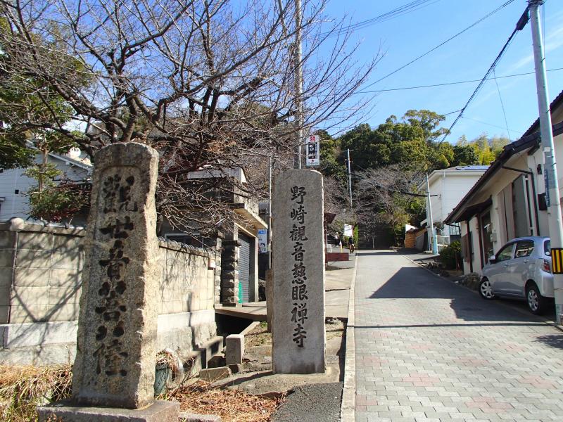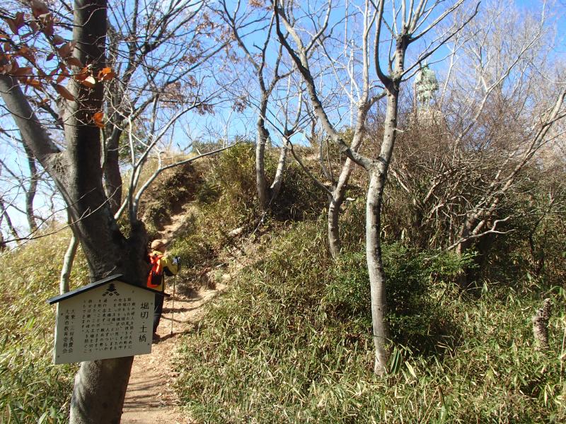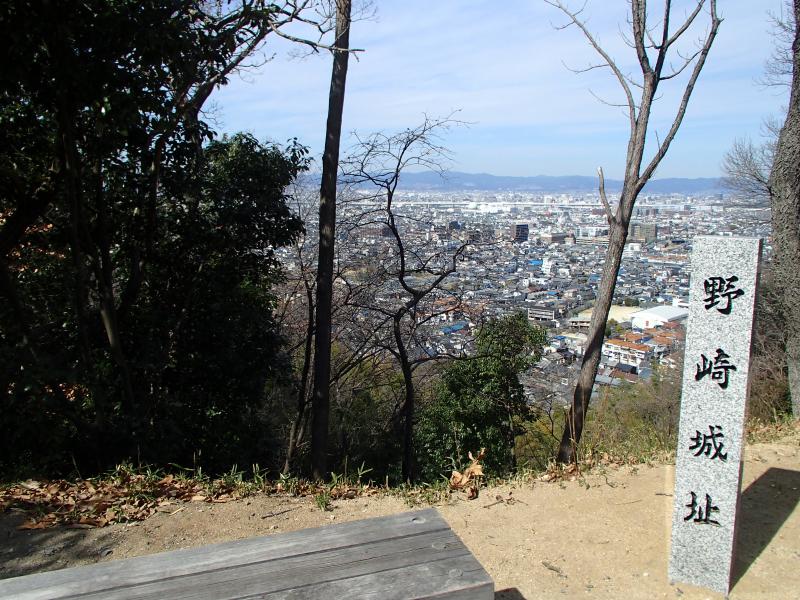 ・野崎観音の上部は展望が良く、かつての「野崎城址」の指標があります。ここまで登り続けなので、休憩するにもいいポイントです。