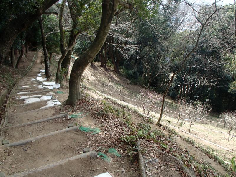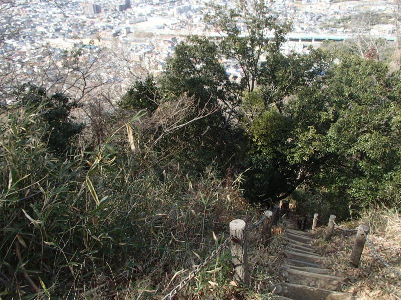 ・山頂から四條畷神社までは結構急な階段が続きます。足元にはご注意ください。御机神社分岐まで続きます。分岐からは緩やかな下りになります。