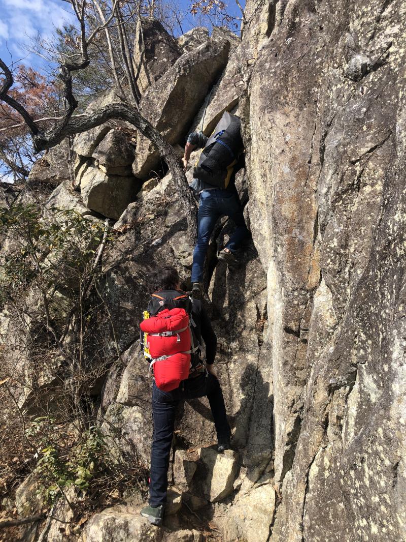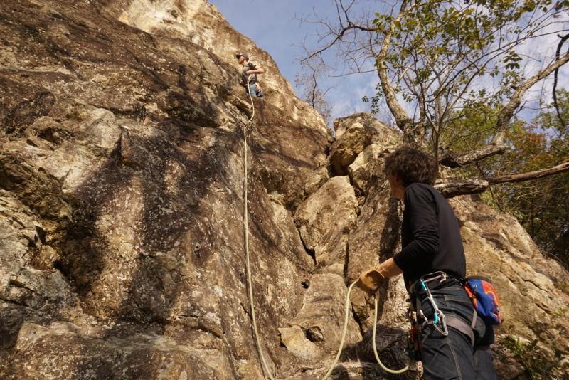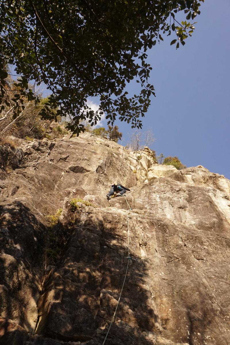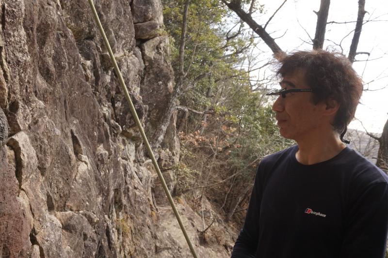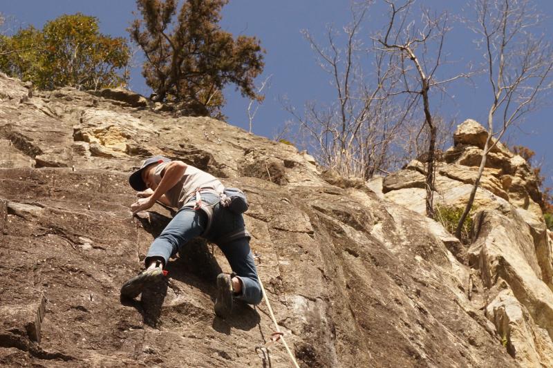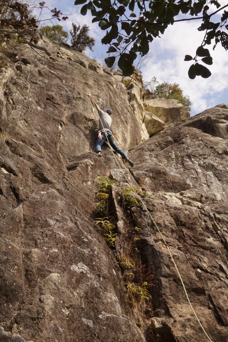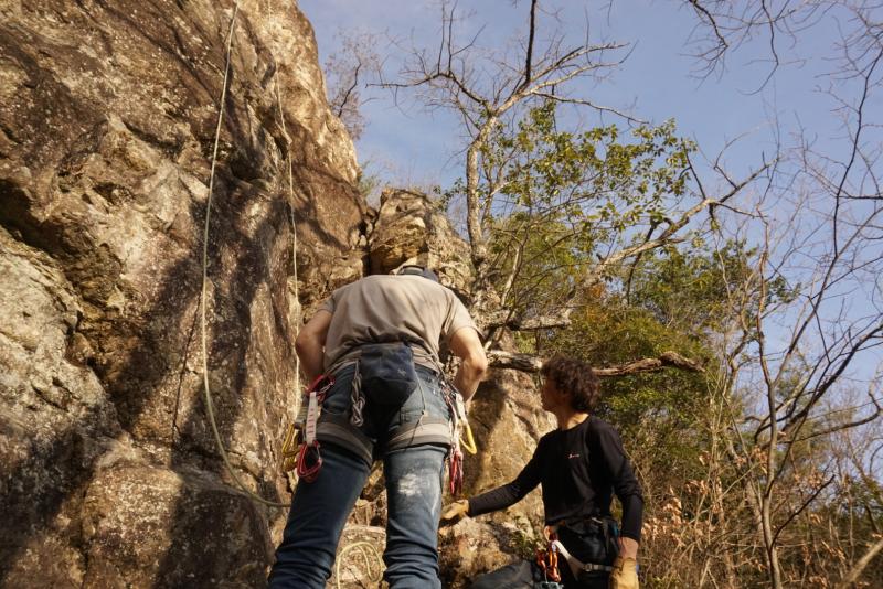 不動岩でクライミング