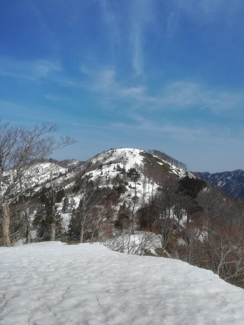 緩んできた雪道は結構足にストレスがかかり、山頂に行けませんでしたが、天気の良かったので楽しく歩けました。