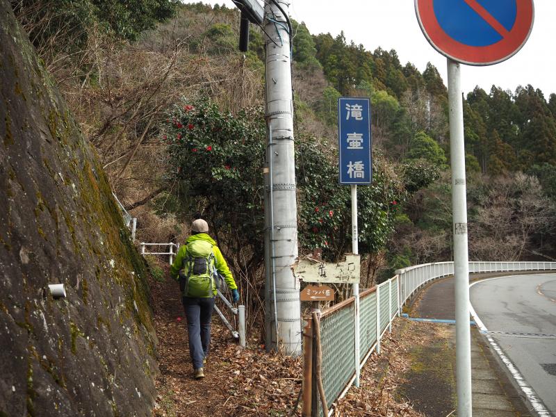 滝壺橋を渡ってすぐ登山口。そこからつづらに急斜面を登ります。