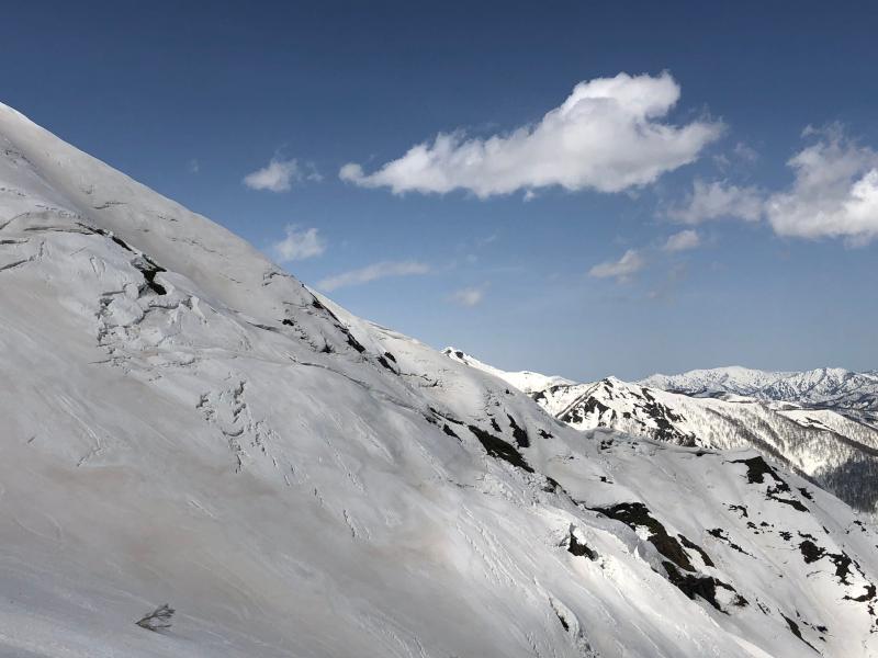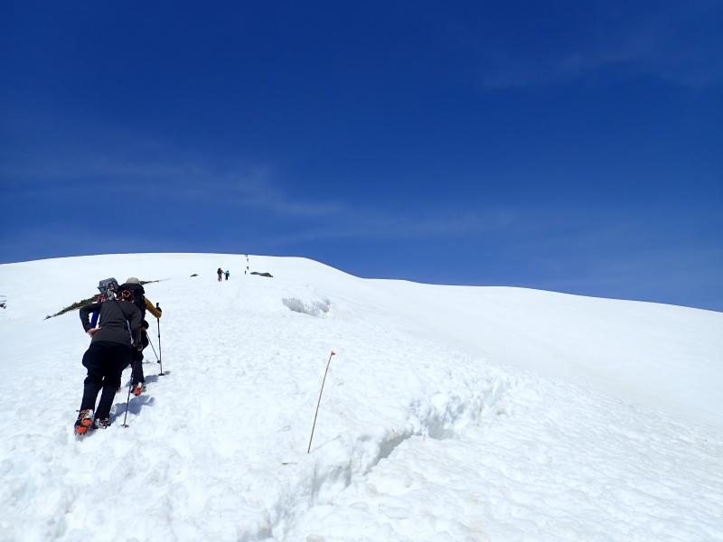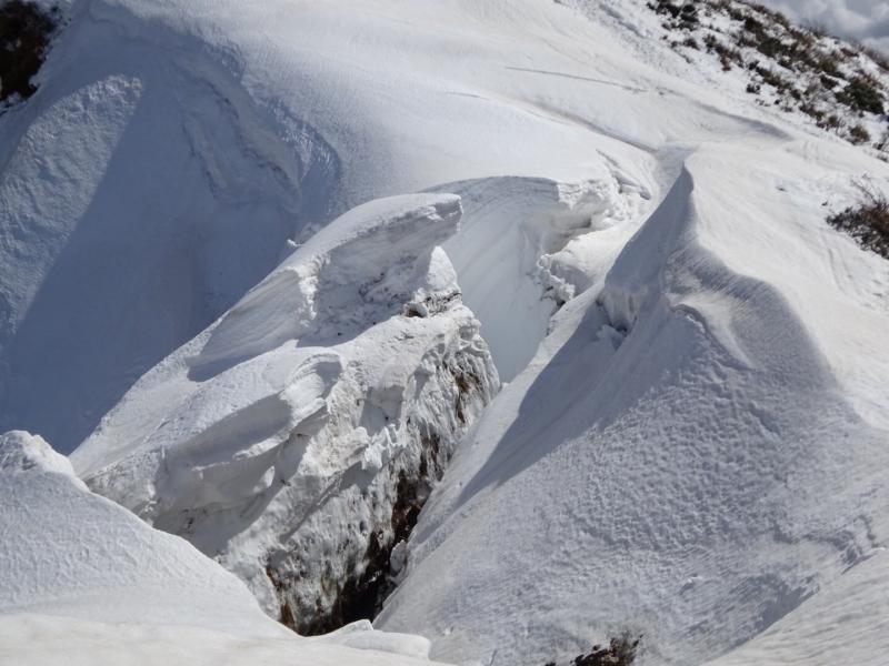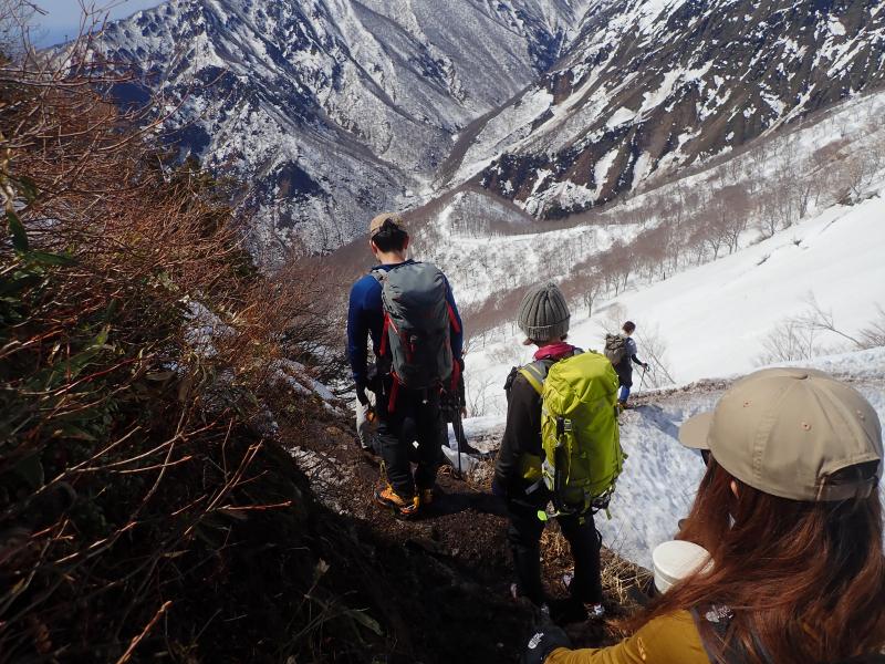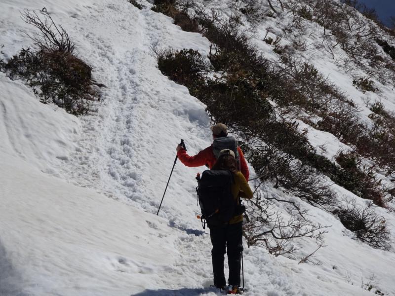 雪は少し緩くなっており、量も少ないかなと思いましたが、熊穴沢避難小屋がほぼ埋まっていたのでそれなりなんでしょう。