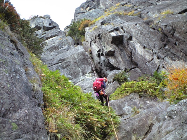 錫杖岳 前衛壁 左方カンテ