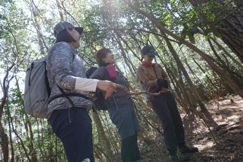 途中、一瞬ピンクテープが切れており、紙の地図以外に使用していた私の使用しているジオグラフィカ(アプリ)と、その他3名が使っているYAMAP(アプリ)のルート表示が違っていたので、1:3に分かれて鬼ヶ島へ向かいました。