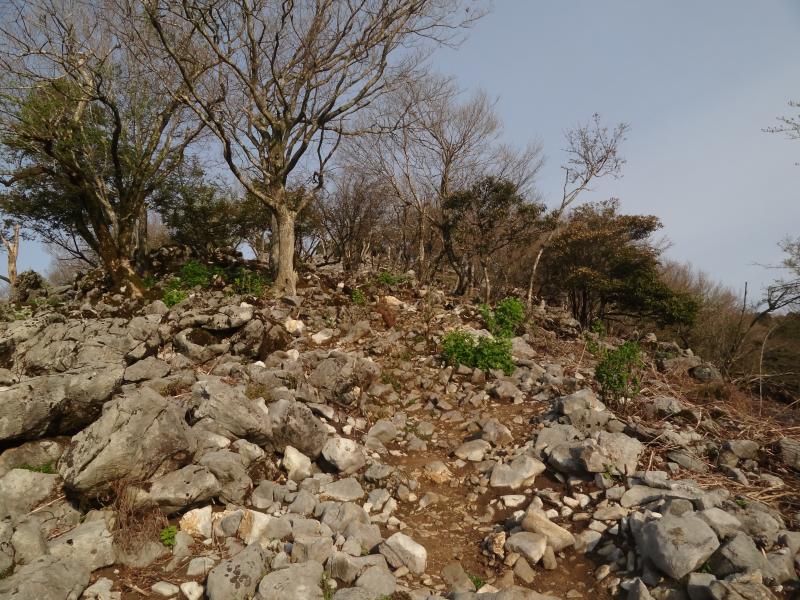 ④最初の展望地あたりから石灰岩の岩が登山道を覆います