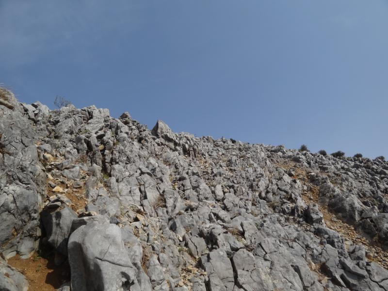 今回も直登で行きましたが、ここは石灰岩の岩が浮石の状態で散らばった急登で、落石注意。高度感があります