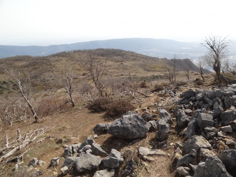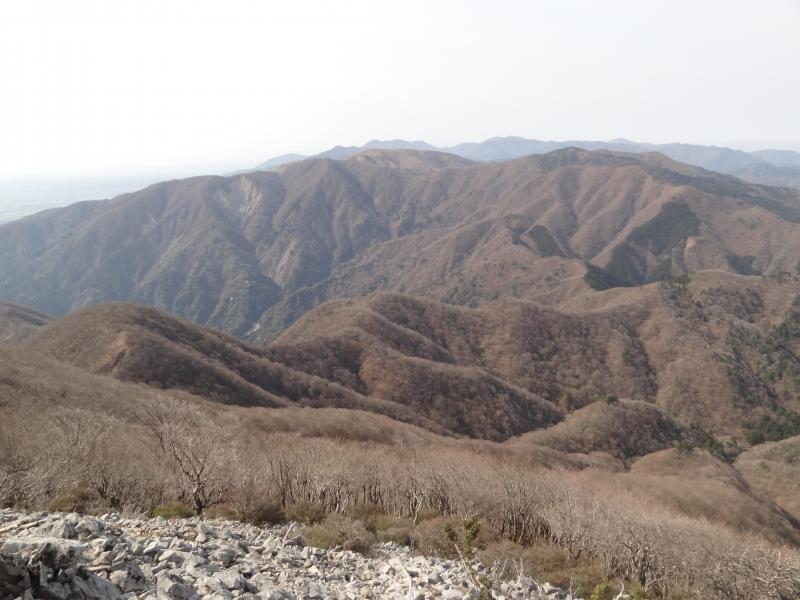 藤原岳(ふじわらだけ・1140m)は日本300名山の一つで、福寿草の群生があり、花の100名山としても知られています。三重県側は鉱山となっており、石灰石が採掘されていて、崩れた山容になっていて、遠くから見てもわかりやすい。