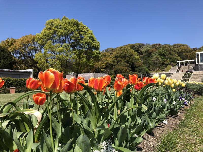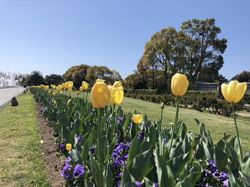 下山の離宮公園は、チューリップが満開。5月になると薔薇が咲き乱れます。
