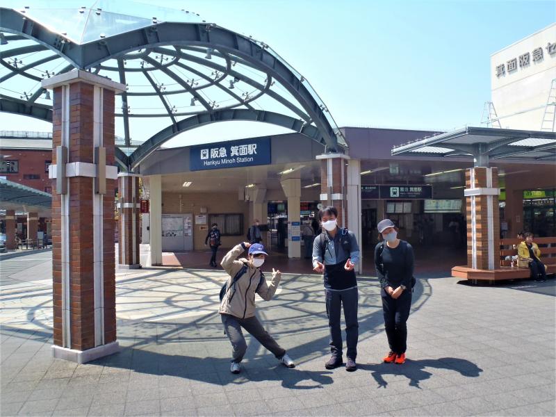 阪急箕面駅 ⇒15分⇒ 瀧安寺 ⇒30分⇒ 箕面大滝 ⇒60分⇒ こもれび展望所 ⇒15分⇒ 政の茶屋園地(昼休憩) ⇒25分⇒ 箕面川ダム ⇒60分(ニホンザルの大群に遭遇)⇒ 箕面ビジターセンター ⇒30分⇒ 箕面大滝 ⇒40分⇒ 阪急箕面駅