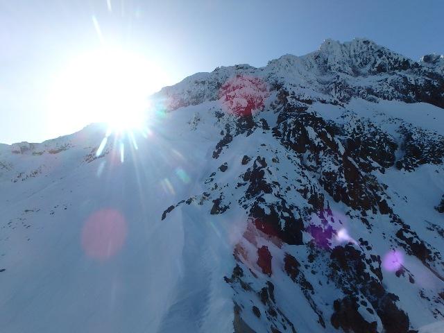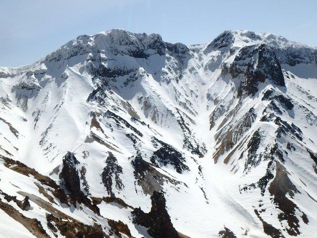 カミホロ北西稜、十勝岳~三段山間はダブルアックスがお勧め。メンバーによってはロープが必要です