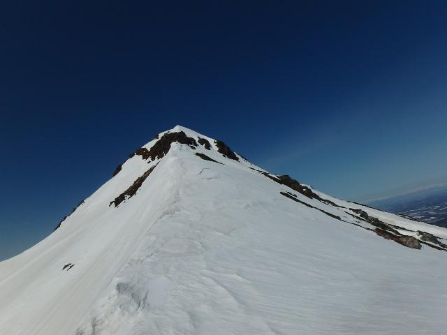 久しぶりにギアを入れて山に行くことにしました。まだ雪のたっぷりとある十勝岳へ、通い慣れたカミホロ北西稜から向かいます。朝から快晴で風もなく、適度な冷え込みでアイゼンが気持ちよくくい込みます。単独ということもあり、あっという間にカミホロ頂上に。今年はまだ2回目のカミホロ。こんなにカミホロに来なかった年もあまりなかったかもしれません。