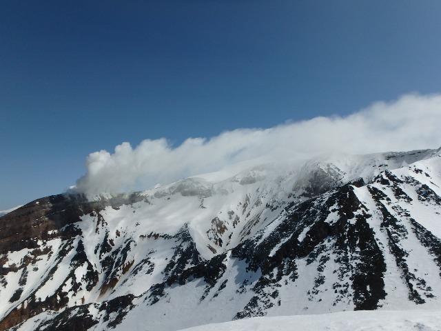 残雪の十勝岳へ:カミホロ~十勝岳~三段山