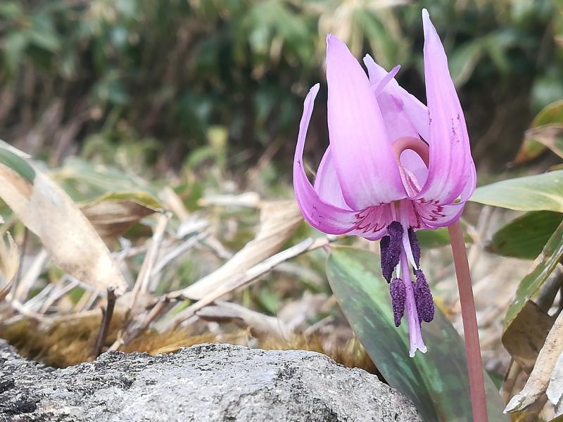 幸い先頭で歩いていたので、逆から登ってきた人に出会うまでは誰にも出会わなかったので、歩いては写真を撮ってゆっくりとカタクリの花を楽しめました。