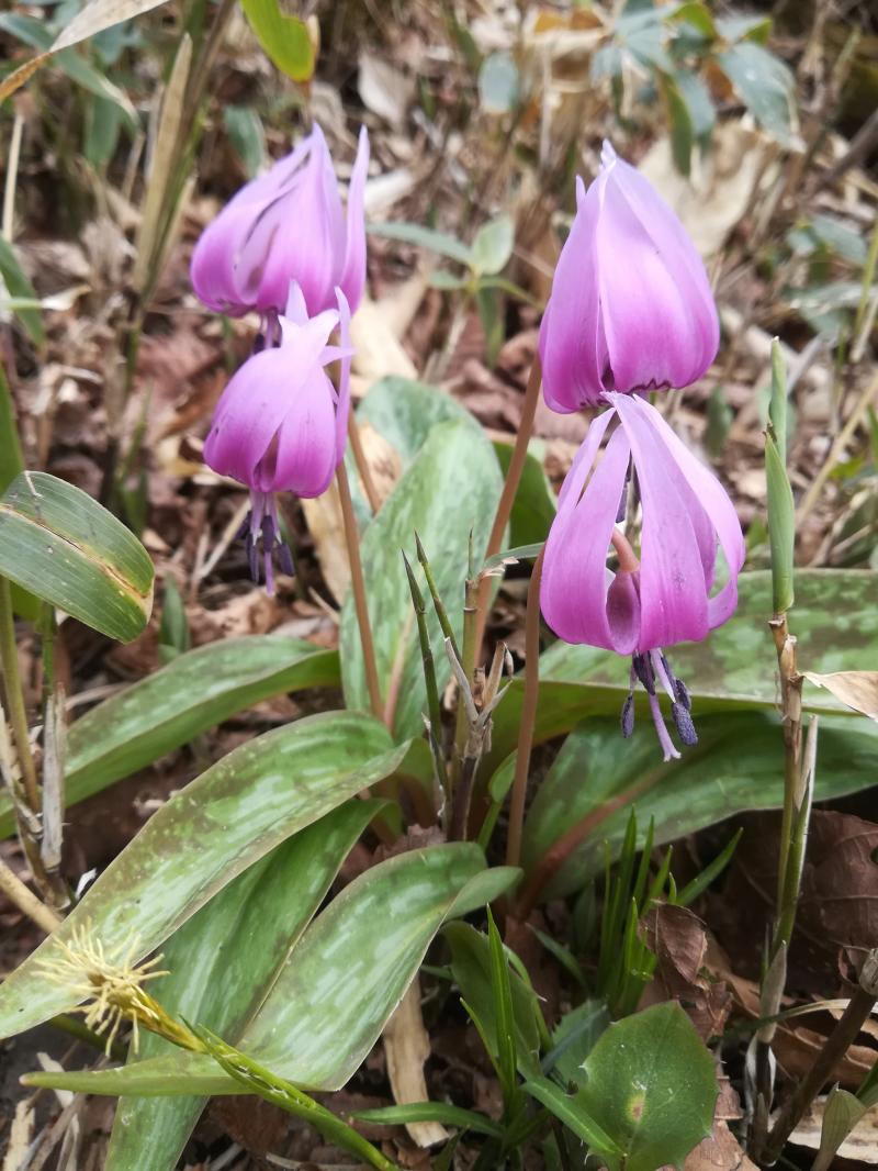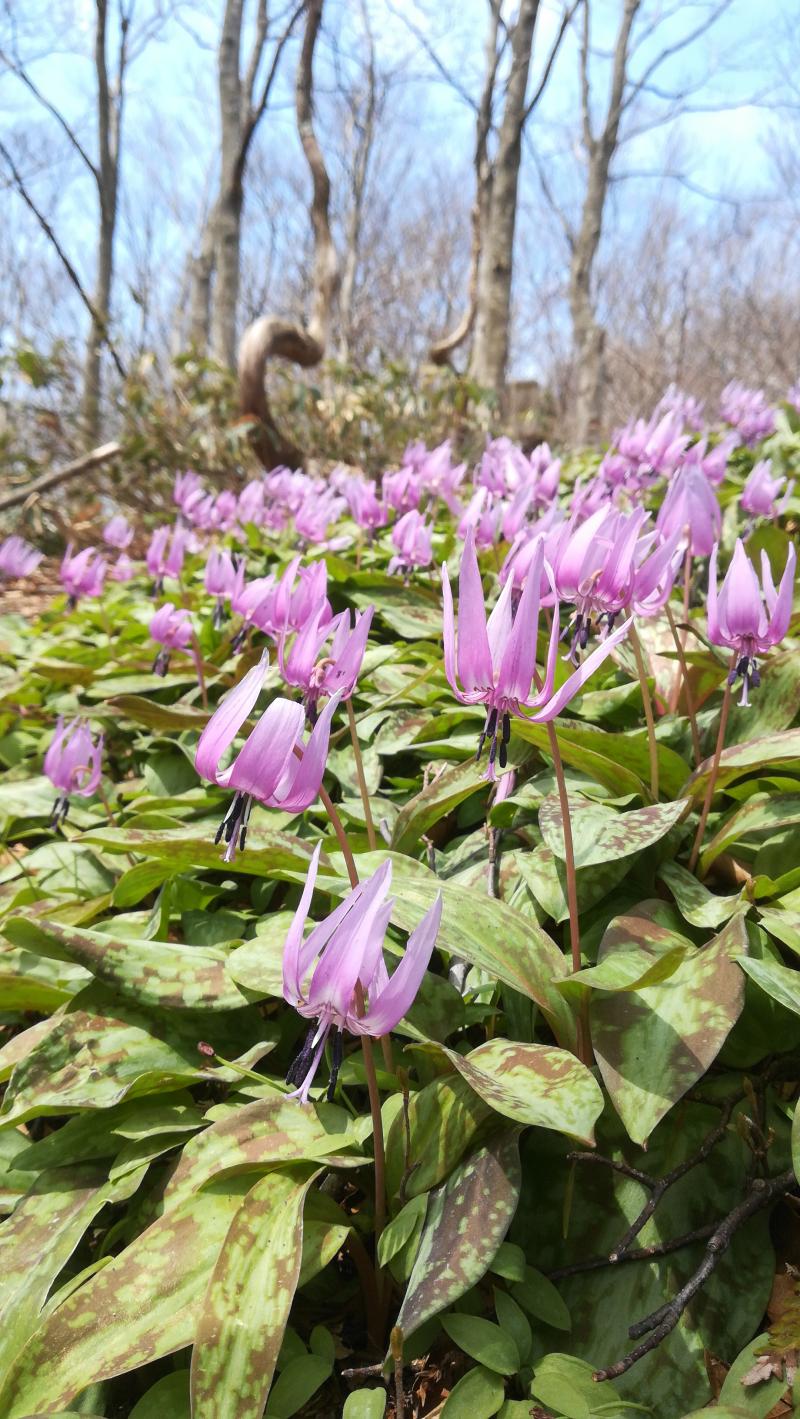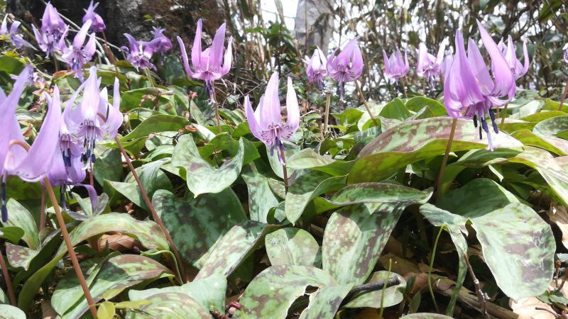 小休止して出発すると、そこから先はカタクリ天国。何度も毛無山に登っているのですが、これまでは早かったり、遅かったりしてちらほらとしか咲いているのしかみたことがありませんでした。