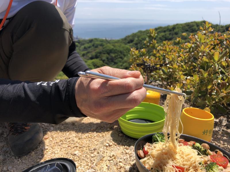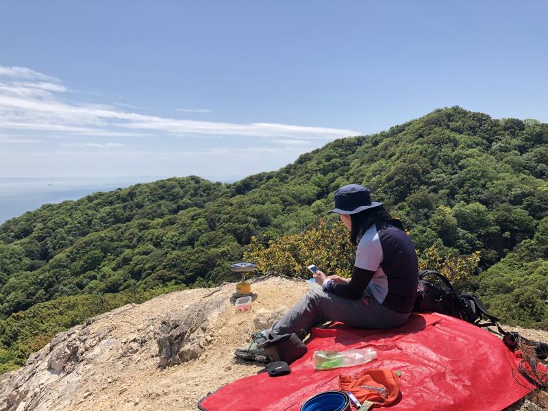 ショートコースなので、その分景色のよい場所でゆっくり休憩します、今日も絶景。トンビが上昇気流に乗って気のちよさげに飛んでいます。