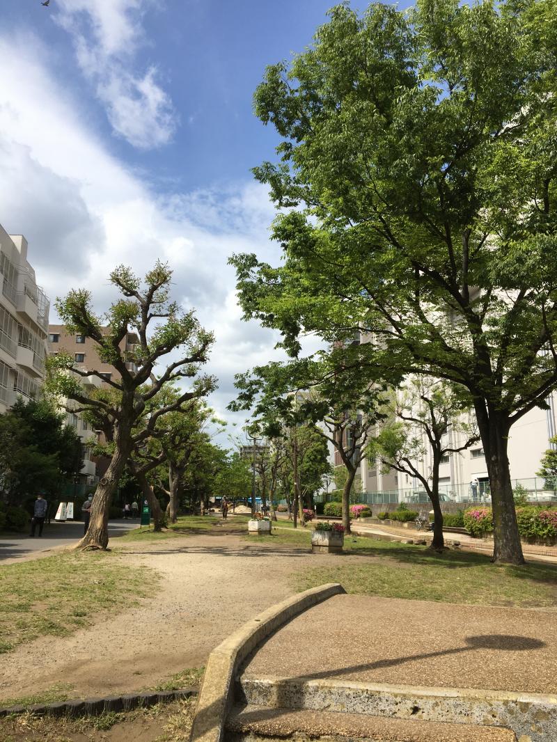 大横川親水公園は錦糸町駅北口から徒歩7分くらいのところにある公園です。ちいさな川が流れていて、途中に遊具などがあって子どもも遊べるのでファミリーにもおすすめです。たばこと塩の博物館も公園に隣接したところにあるので、ついでに寄ってみるのもいいと思います。