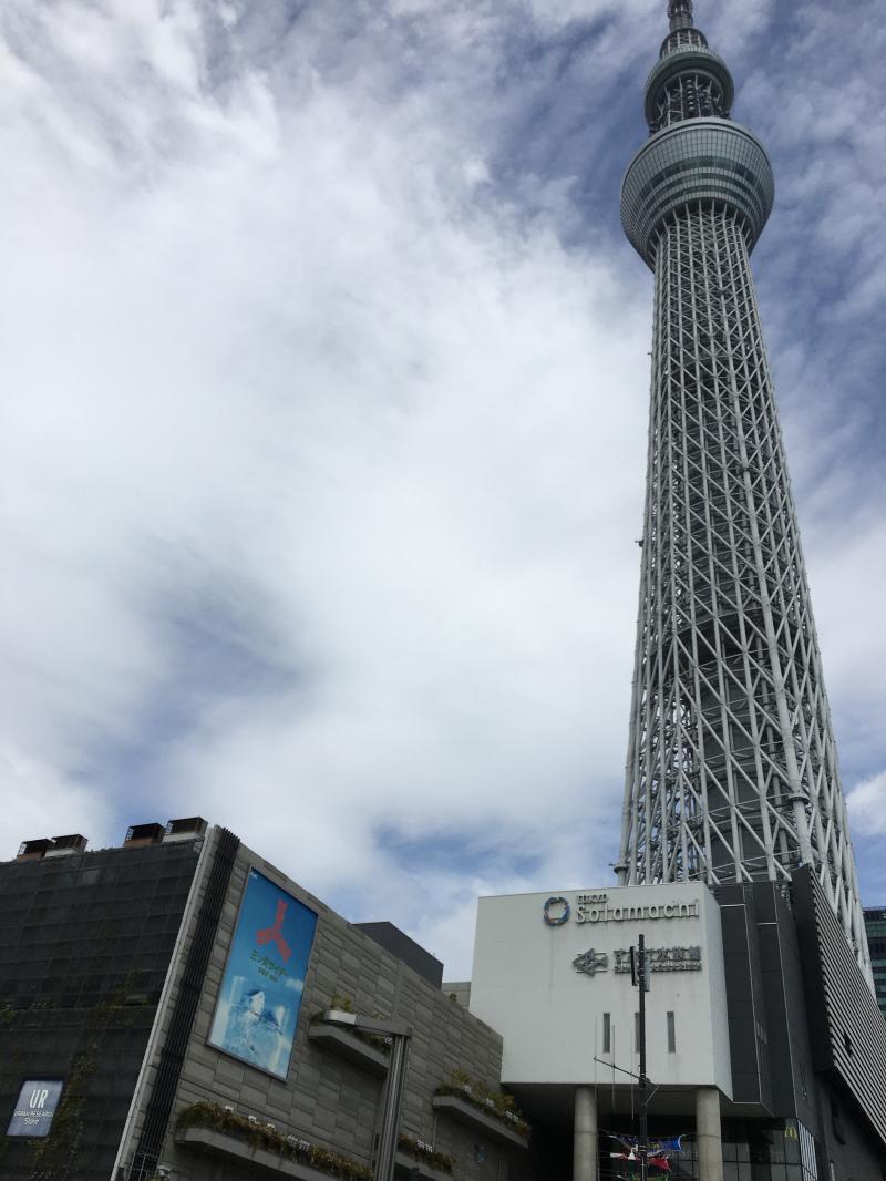 公園を抜けるとスカイツリーは目の前です。交差点に出たら左手に進むと浅草方面です。昨年新しくできたミズマチはスカイツリーと浅草をつなぐ道になっていて、カフェやショップが並んでいます。基本的に墨田区関係やメイドインジャパン的な店で構成されていて、東京観光の新しいスポットになっています。