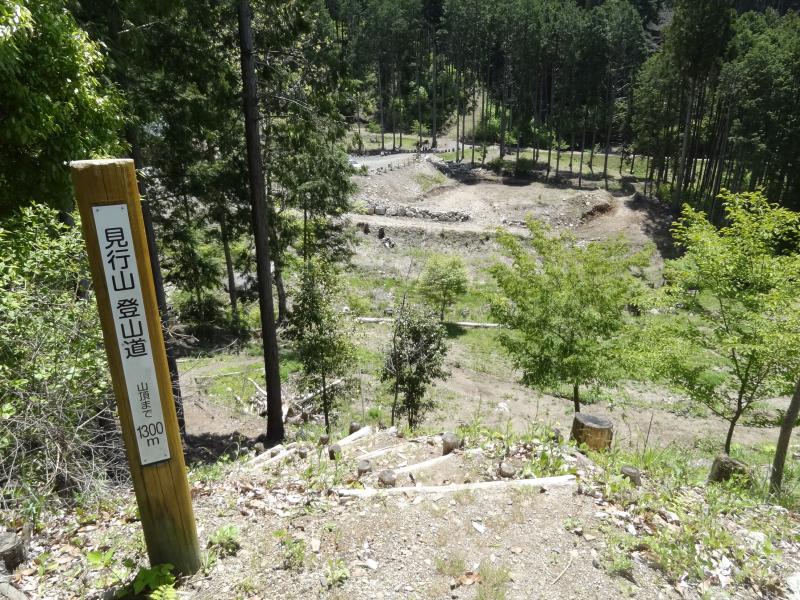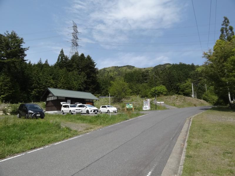 ➀福地いろどり村に見行山駐車場があり、トイレもあります。登山道マップもあり。