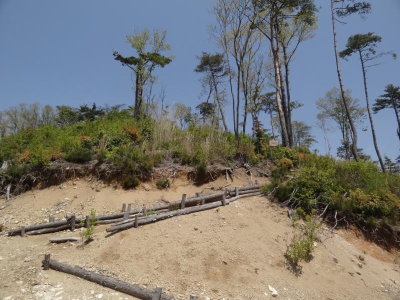 今回は新登山道から以前からある登山道の周回を試みましたが、今日は平日でも数組の方がいらっしゃるようなのでマスク装着で登ってきました。登山口には体験施設ができる福地いろどり村という施設があり、キャンプ体験ができるようです。この中を通って、階段など整備が行き届いた登山道が続きます。登山道整備で木を伐採して見晴らしを良くしている感じはあります。666・777・888mとゾロ目には大きな看板もあり、視界が開けて来ると、林道に出て、山頂はすぐ上です。山頂からは御獄山・笠置山が大きく見え、遠くに恵那山・伊吹山・中央アルプスと南アルプスが見える360度パノラマが広がります。