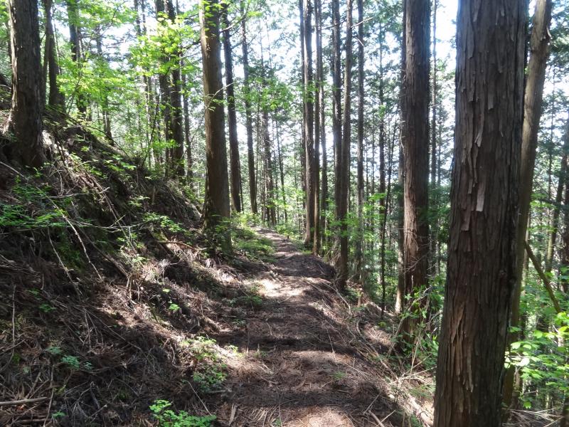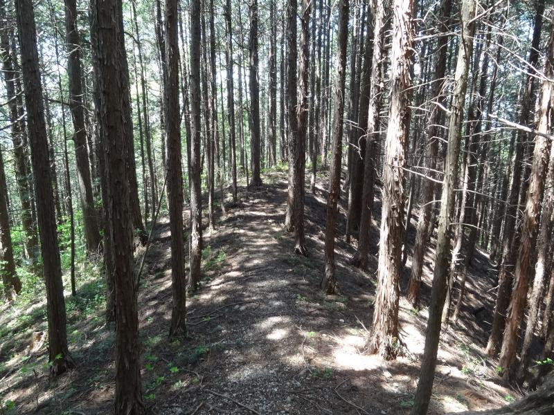 ⑩15分程度でちょっとした二股を左へ折れるとすぐ下に未舗装林道にでます