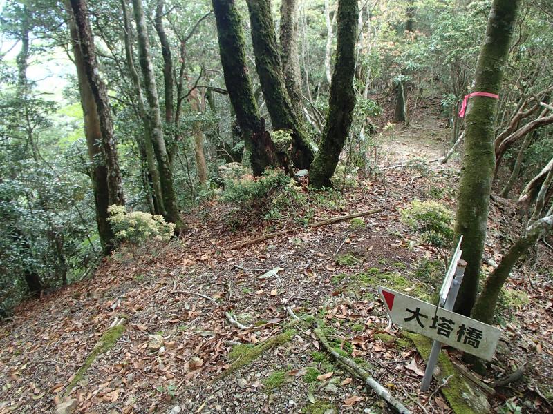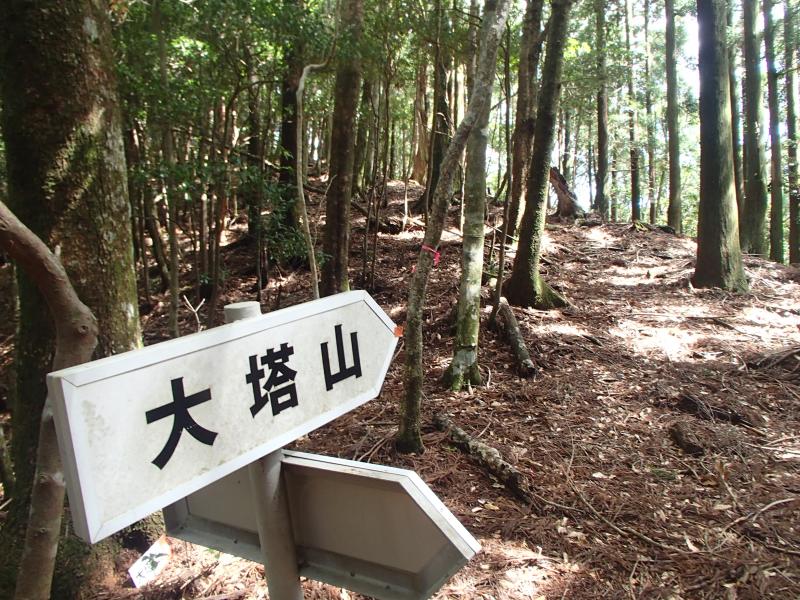 ・倒木の下をくぐって、先に進むと見覚えのある雰囲気になり、やや下ると「大塔山 2KM」の指標を発見。やはり迷ったのはこのポイントだったと判明し納得。大阪府の四石山でのミスを繰り返した感じでした。全く成長しない自分が情けない・・・。
