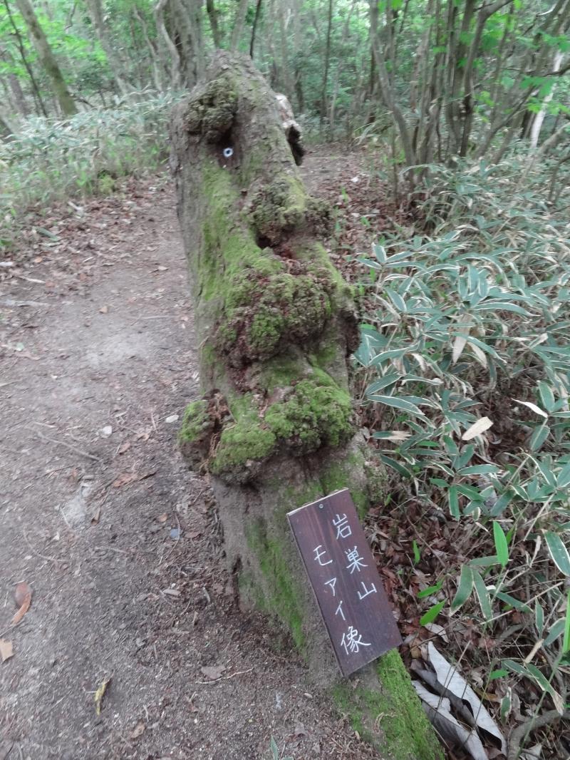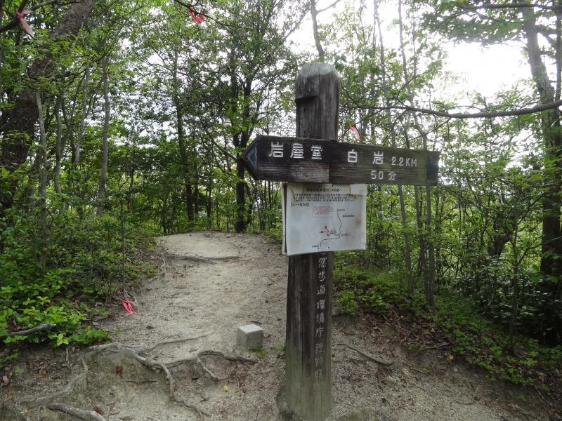 岩屋堂公園は今、新緑がきれいなですが、若干、ファミリー層が川遊びをしていたくらいで、人はほとんどいません。このコースは東海自然歩道が走っており、整備は行き届いていて、最初から階段が多いです。前半は巨岩巡りのような感じでなかなか変化があります。岩巣山展望台まではそれほど時間がかかりませんのでお子様連れでもちょうどいい散策コースでしょう。展望台からは名古屋市街も見えますが、周辺は緑が深い所というのがわかります。ここから山深いところを進み、さらに一旦下り切り、さあに道標には白岩としかでて来ず、一本道とはいえ、やや不安になるかもしれません。上がりきると元岩巣山分岐で元岩巣まではすぐです。元岩巣から周辺も見ると本当に樹木しか見えず、低山ながら本当に山深さを覚えます。向こう側になだらかな岩巣山が拝めるので、ここからの行き先がわかります。岩巣山まではほぼ尾根歩きで楽に行けますが、なんだか岩屋堂からかなり遠回りした気分でなかなか着かなかったのが印象です。おそらく岩巣山から先の尾根を下って行くと岩屋堂に行けそうですが、分岐の所に戻ってくるような書いてありました。