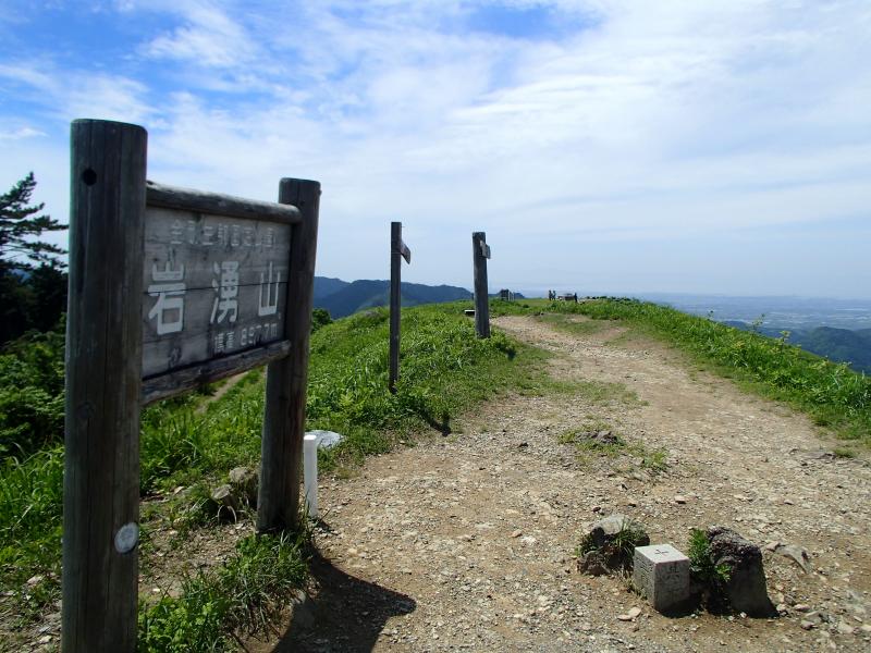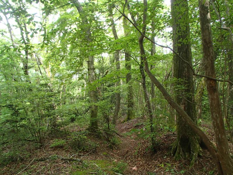 ・ヤマアジサイの群生が有るらしき場所にはまだアジサイの花は無く、蕾が少し色付いている程度でした。登りが続きますが、やや平坦な場所に出て少し歩くと「ここ!?」っていう感じで根古峰の頂上に到着します。開けてはいますが展望は有りません。