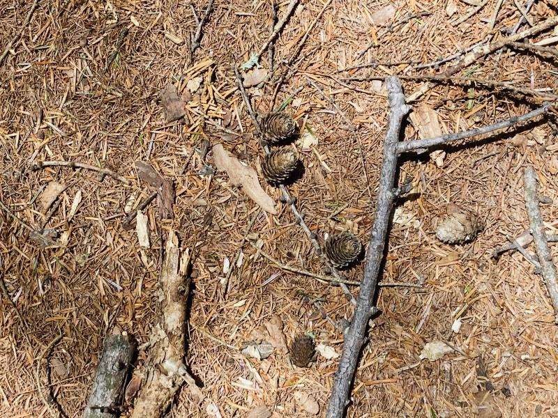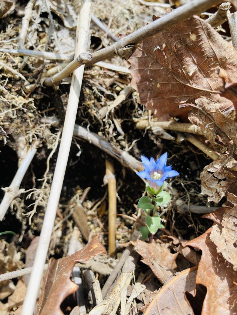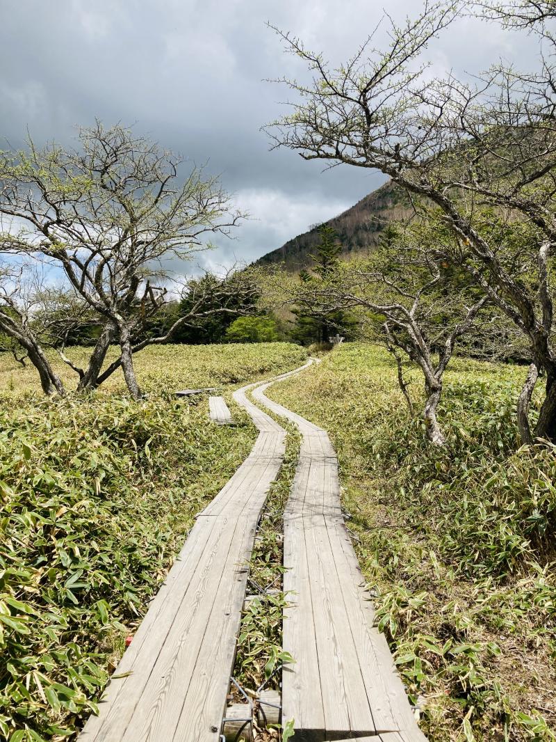 近年、戦場ヶ原を含むこの山域ではシカの個体数が増加し、食害も増えているとのこと。よくよく見れば、山中にもシカの食べ痕が多くあることに気づきます。葉や茎が引きちぎられ、繊維がぎざぎざ飛び出てしまっているのは、おそらく前歯を持たないシカに食べられた痕です。