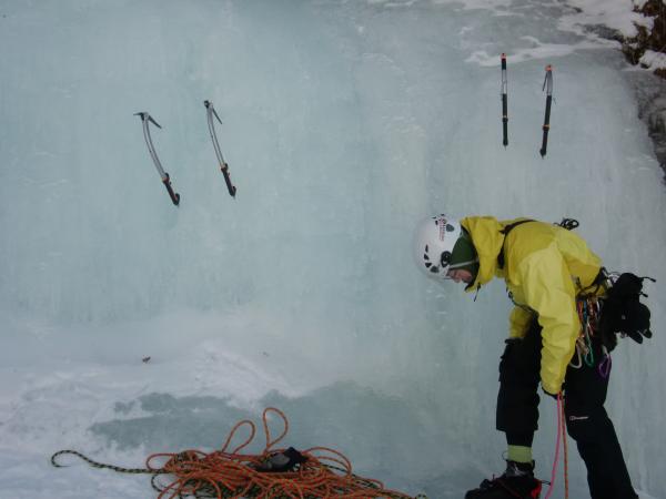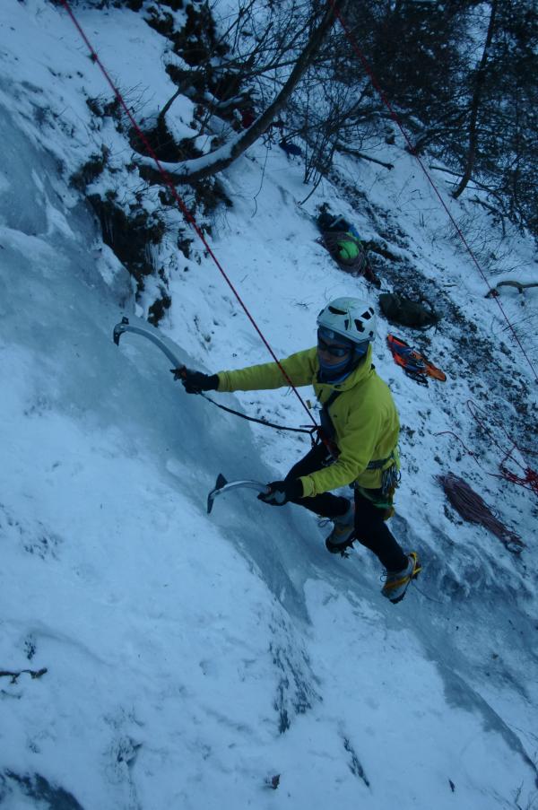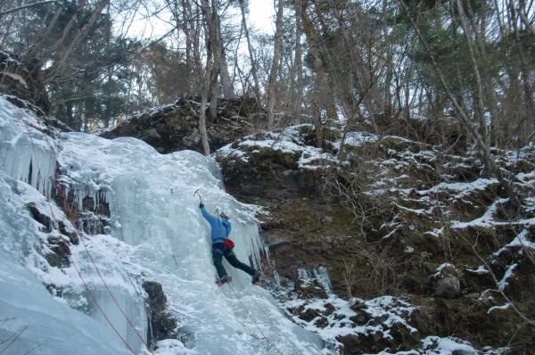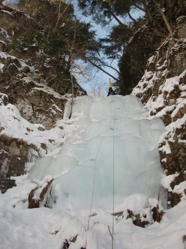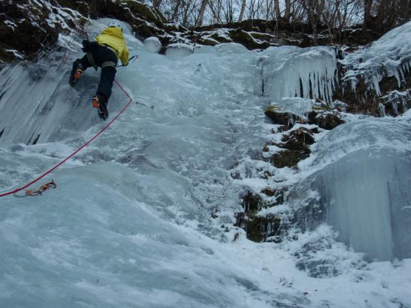 アックスが凍った滝にサクッと刺さる感触がくせになりそうです。
