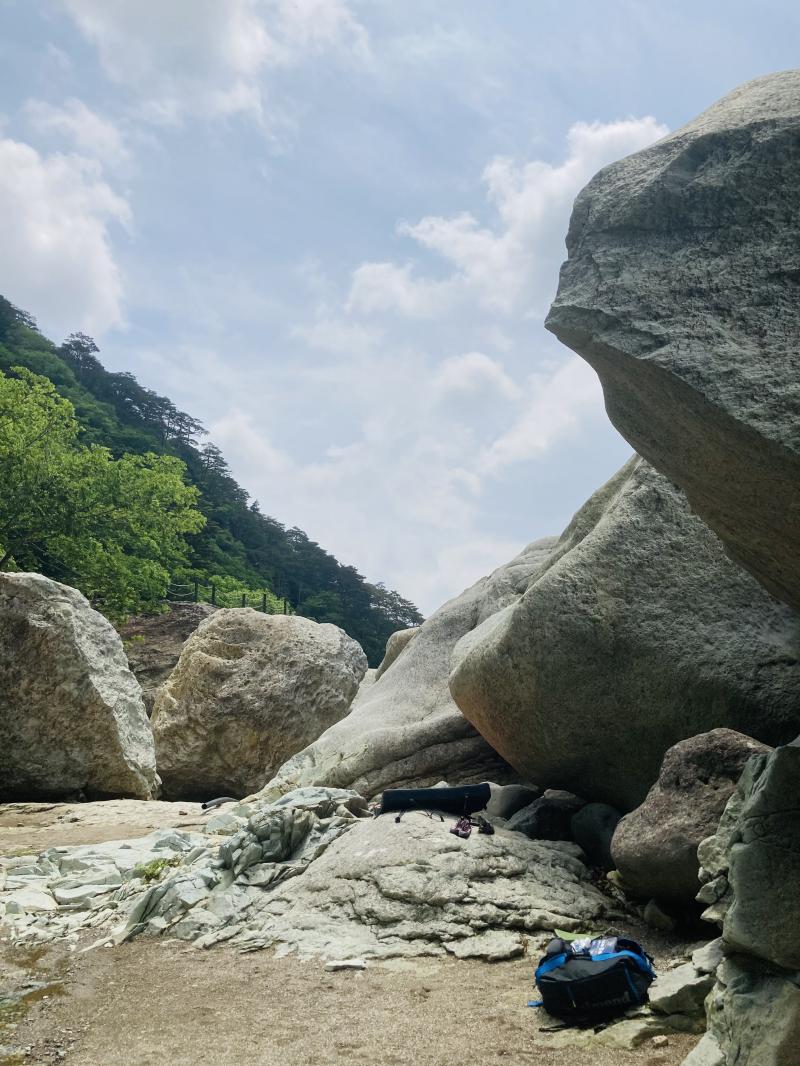 駐車場から野立岩に架けられた橋を少しすぎたあたりのガードレールから、岩場に降りることができます。