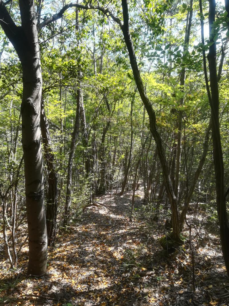 山頂の先にある太郎岩まではほとんど展望が開けず、ひたすら雑木林の中を歩きます。