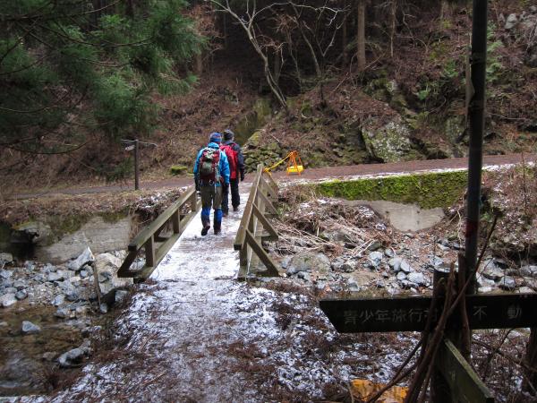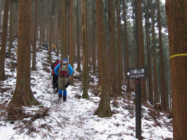 - 駐車場(30分)森林組合展望台(45分)山小屋(30分)三峰山山頂