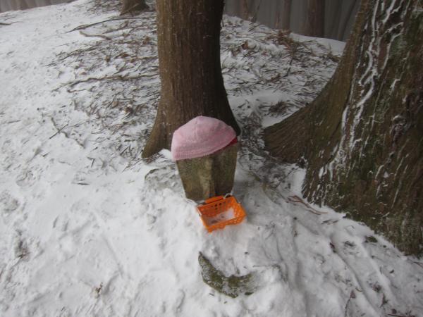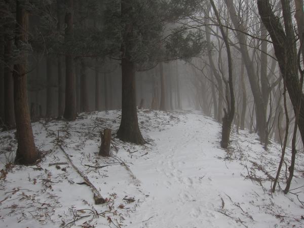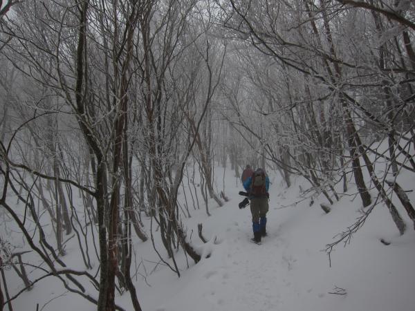 登山道は最初はうっすら雪がある程度ですが、途中から雪がしっかりあります。
