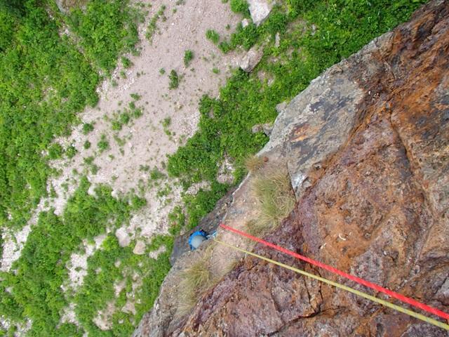 7ピッチのロングルートなので窓岩だけで午前中が終わってしまい、休憩を挟んで二人共初見の『ハチハニーリッジ』を登りました。確信の1ピッチ目のリードをパートナーにおねがいしましたが、ルート中に残置が全くなくカムを使ってのナチプロでのクライミングとなりました。2ピッチ目もやや脆いクラックの乗り越えがあり、隠れた好ルートでした。