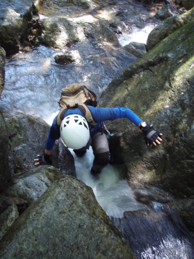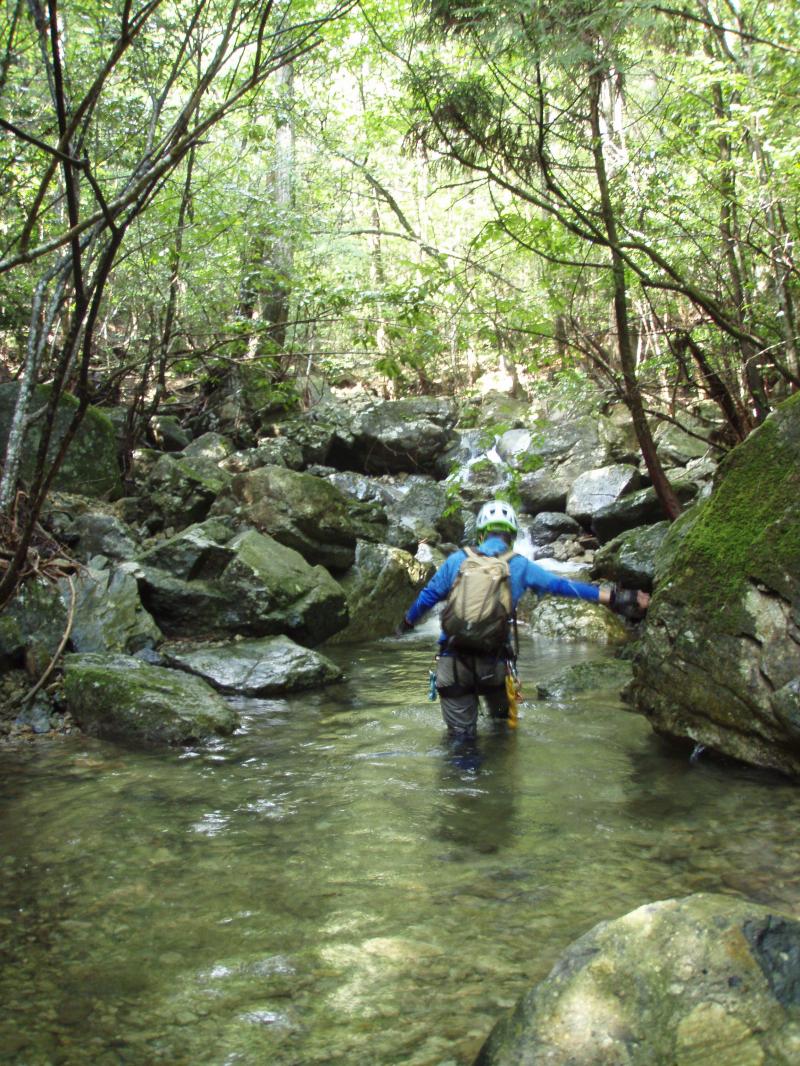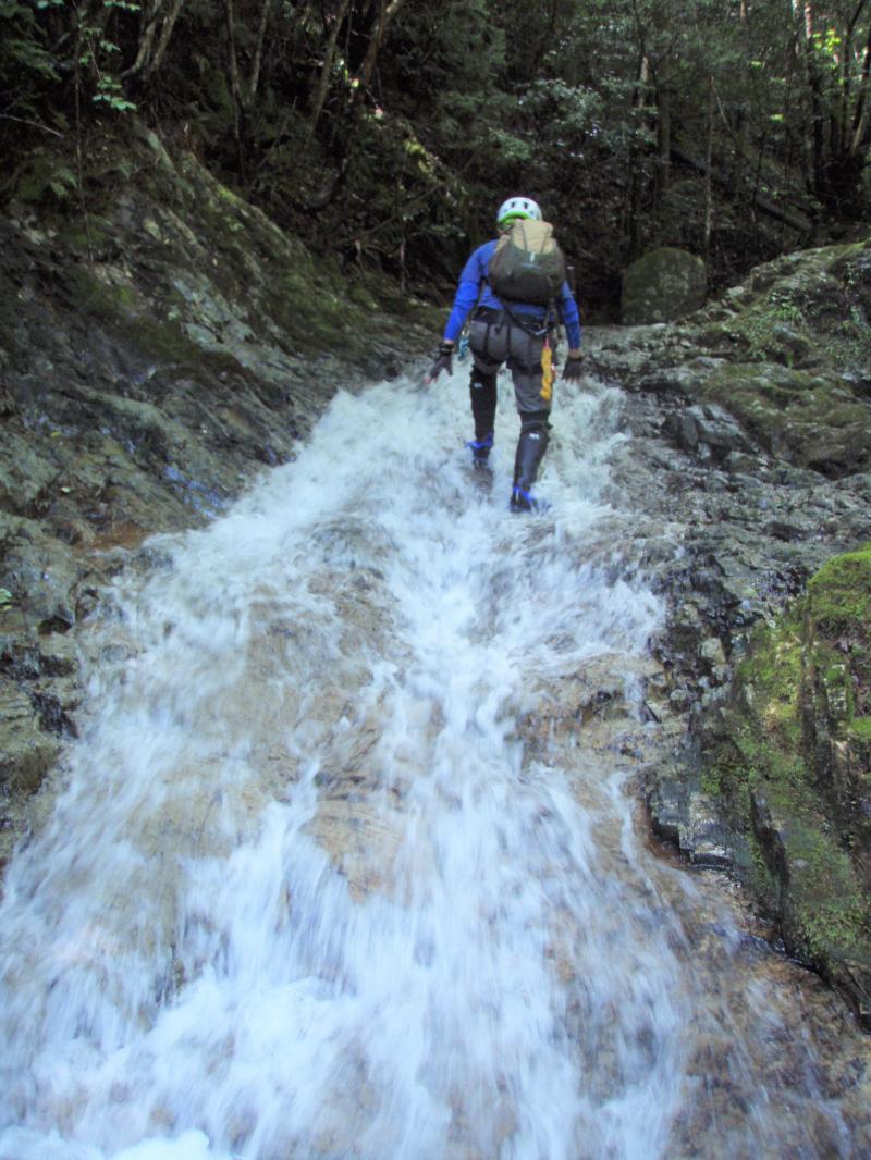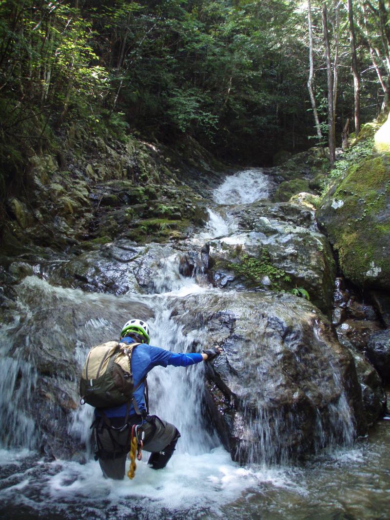最初はぎこちない動きをしていたアルバイトさんでしたが、少しずつ三点支持による移動などもスムーズにできるようになり、次は二ノ滝の登攀に…という所でしたが、雲行きが怪しくなってきたので、沢と並走している登山道を歩いて下り、雨に降られる前に下山しました。