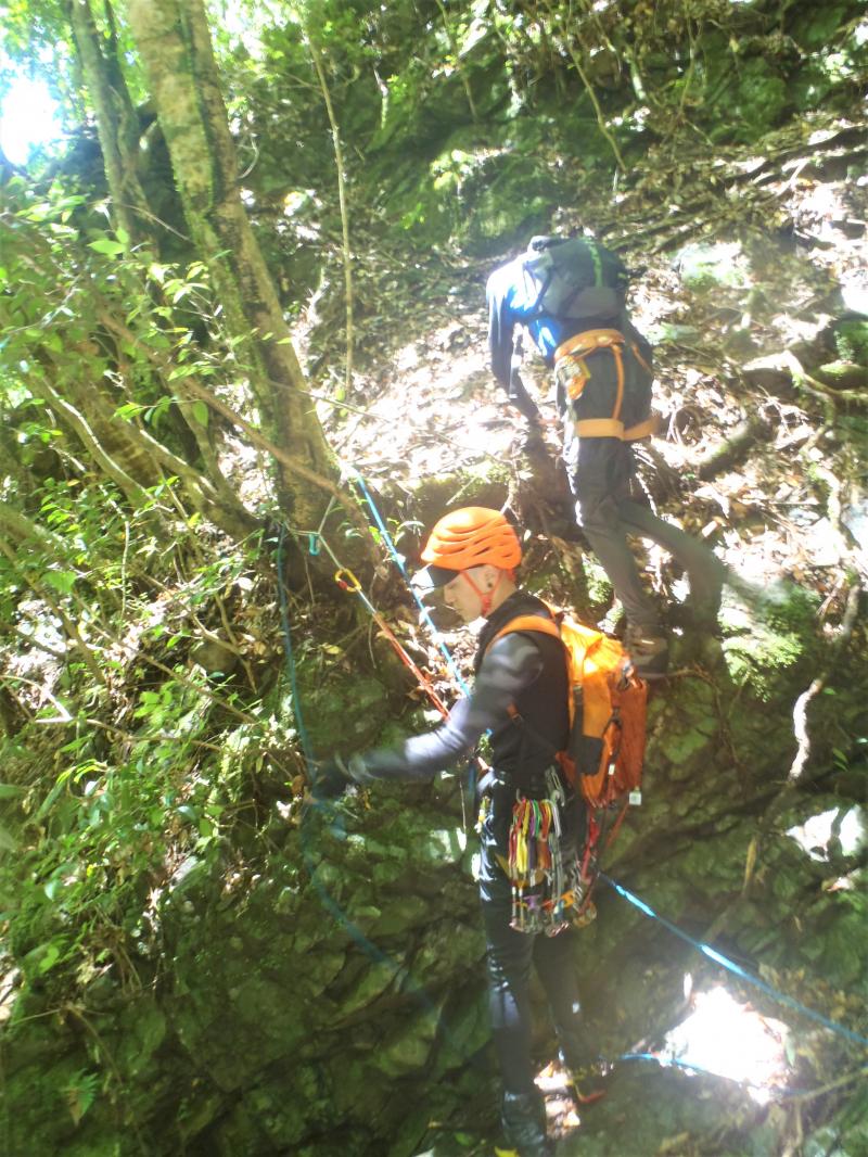 巻き道もぬかるんでいて滑るので、2回目の懸垂下降。