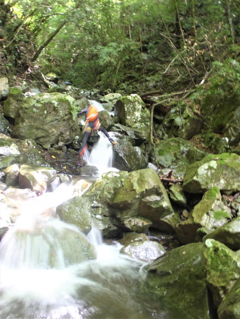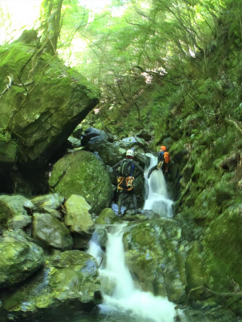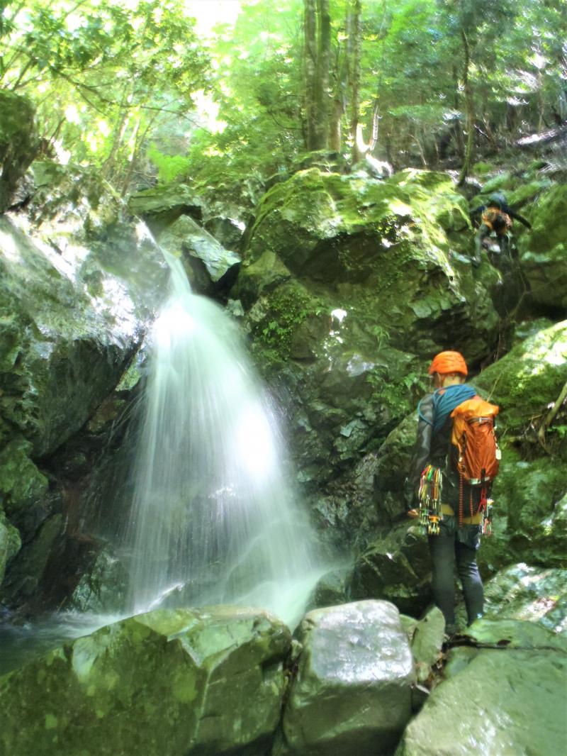 大峰は苔が多い沢なので、ラバーソールよりフェルトソールの方がおすすめ。