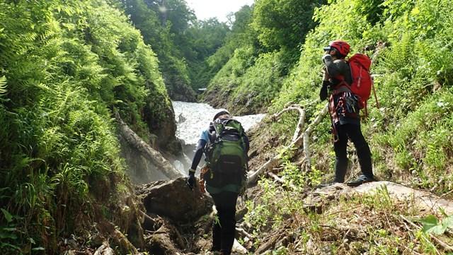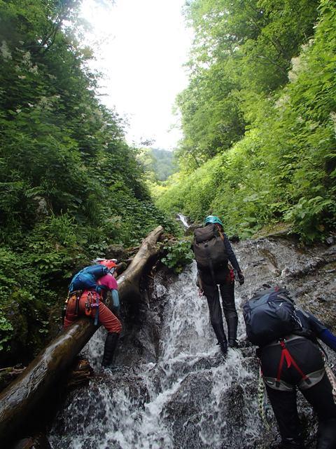去年までこの沢は林道が開いておらずアプローチが大変だったようですが、今年は林道が数年ぶりに解放され車止めからすぐに入渓できるようになりました。