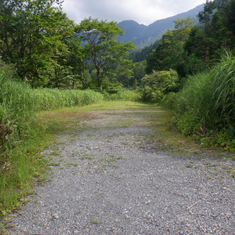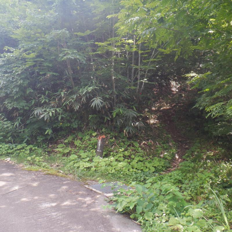 吾策新道入口を過ぎると、すぐに舗装路は2つに分かれますが、右へ進み林道終点へ。