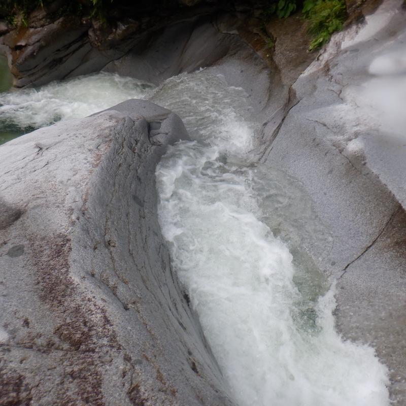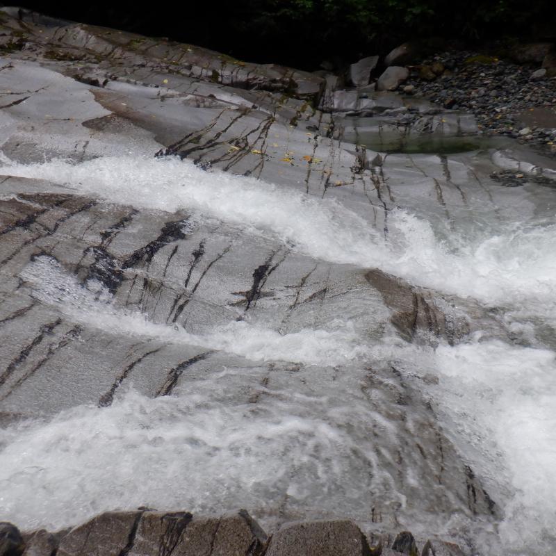 魚止メ滝を越えると、特異なナメが広がる渓相へ。