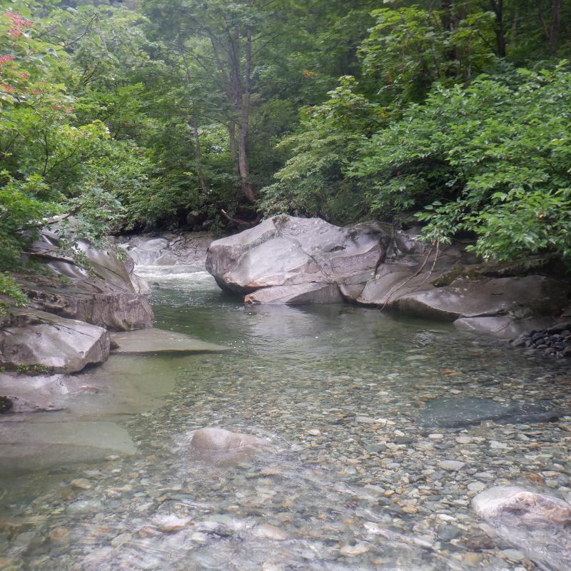 ここからは小滝や釜のある河原状の渓相がしばらく続きます。